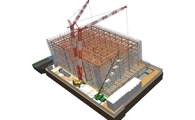 仮設計画や鉄骨建方等の工事の流れを3Dモデル化することで、効率的な作業方法のシミュレーションが可能になり、現場の手戻り削減による無理のない工程管理の実現と施工内容の可視化による安全管理と品質管理の向上に役立ちます。