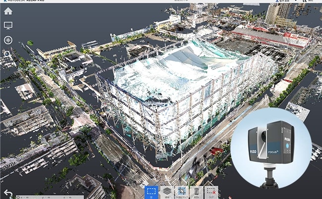 敷地内の起伏形状の確認、既存建物の改修工事や設備機器更新において、3Dスキャンデータを元に再現モデルを作成し、精度の高い改修設計を提案、効率よく手戻りの無い工事計画の立案が可能となります。