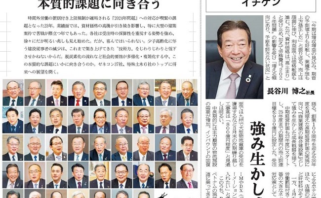 2024年1月1日(月)発刊の日刊建設通信新聞 「2024年元旦号」において、長谷川社長のトップインタビュー 記事が、1月5日(金)には建設産業界トップ年頭訓示が掲載されましたのでお知らせいたします。