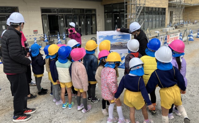 九州支店の「(仮称)ゆめマート那珂川店SM棟新築工事」作業所において、2025年12月3日(水)施主である株式会社イズミ様主催のもと、保育園児の皆さんをご招待し、「工事現場見学会」を実施しました。この活動を通して、地域の子どもたちに建設業の魅力をお伝えすることができ、教育的・社会的にも意義深い取り組みとなりました。